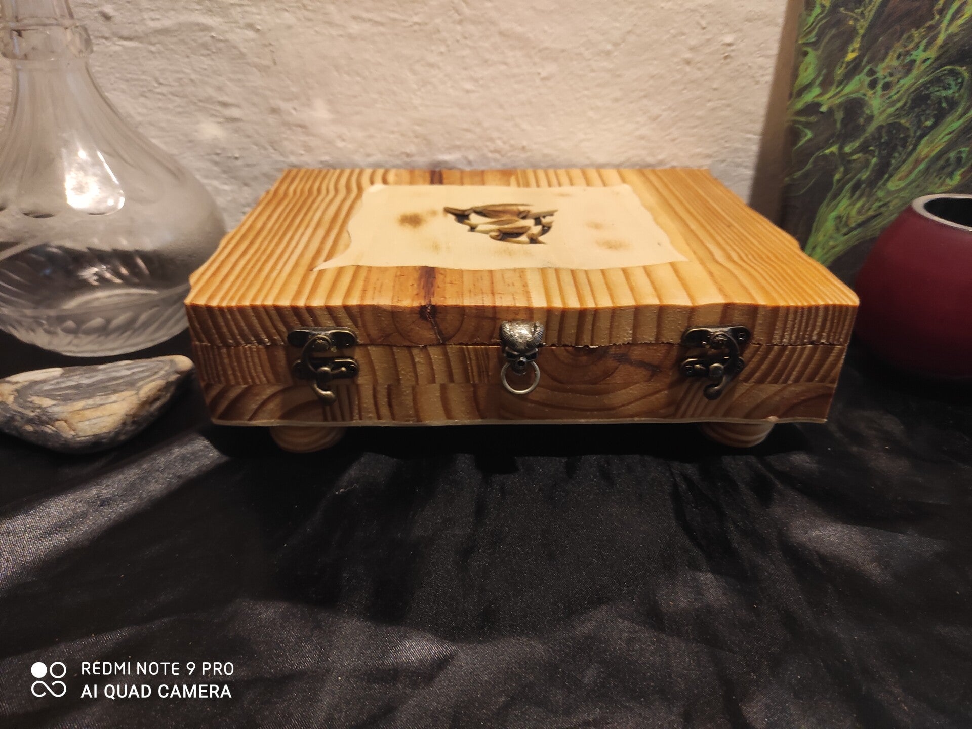 Chaque détail, des cornes acérées aux traits puissants, évoque la puissance, la protection et le mystère, transformant ce coffret en un refuge sacré pour vos trésors, talismans ou objets chargés d’énergie.